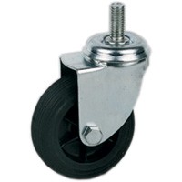 Колеса с ошиновкой из инжекторной черной резины, центр из полипропилена. представляют собой черные колеса. Подшипник скольжения со втулкой.