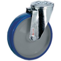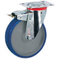 Колеса с ошиновкой из инжекторного полиуретана, жесткость 85 шор А, центр из полиамида-6 . Подшипник скольжения со втулкой или роликовый подшипник.