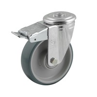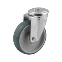 Колеса с ошиновкой из термопластичной резины, жесткость 85 шор А, центр из полипропилена . Комплектуются:1) втулкой скольжения; или 2) роликовым подшипник; или 3) шарикоподшипником.